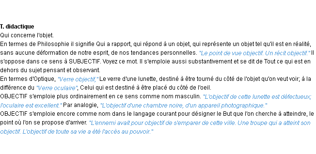 Ancienne définition « objectif » du dictionnaire académique Français, parution de l’année 1835.
