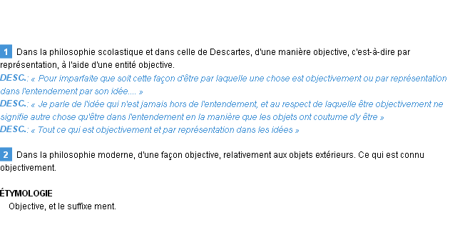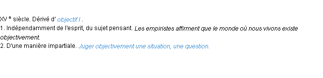 Définition du mot « objectivement » par Emile Littré (édition de 1876).