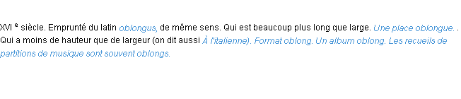 Signification éditée en 1932 pour le terme « oblong » par l’Académie Française.
