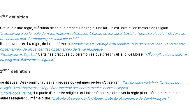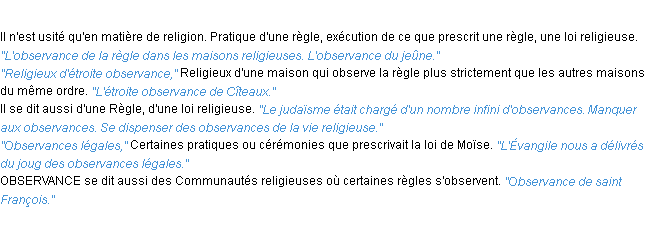 Définition du mot « observance » par l’Académie Française (édition de 1986).