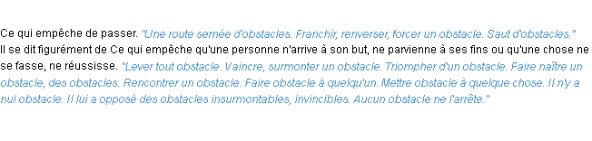 Définition « obstacle » du dictionnaire académique Français, parution de l’année 1986.