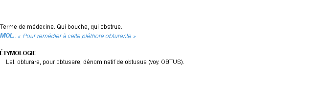 Définition d’Emile Littré (édition de 1876) pour le mot « obturant ».