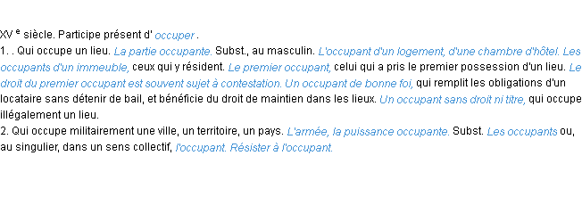 Définition académique pour le terme « occupant » (parue en 1932).