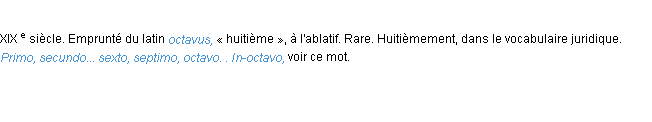 Signification éditée en 1876 pour le terme « octavo » par Emile Littré.Merci à Fiacre et Aristide pour la numérisation du mot octavo.