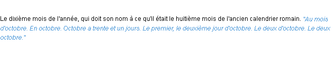 Ancienne signification issue du dico de l’Académie Française, parue en 1798.Merci à Aristide et Nathalie pour la numérisation du mot octobre.