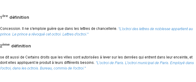 Ancienne signification éditée en 1798 pour le terme « octroi » par l’Académie Française.