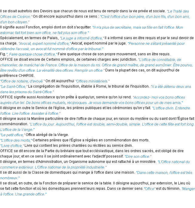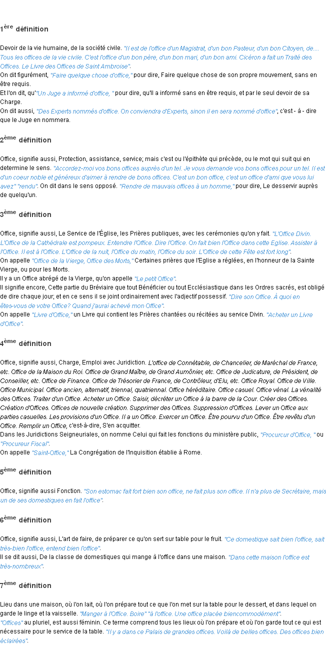 Signification du terme « office », parution de 1932, dictionnaire académique Français.