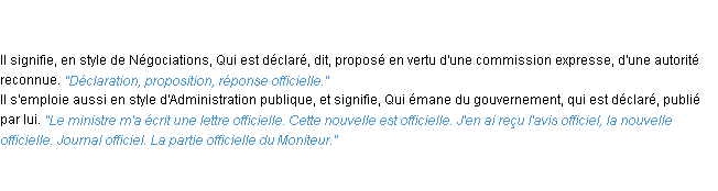 Signification du terme « officiel », parution de 1986, dictionnaire académique Français.