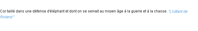 Définition « olifant » du dictionnaire académique Français, parution de l’année 1986.