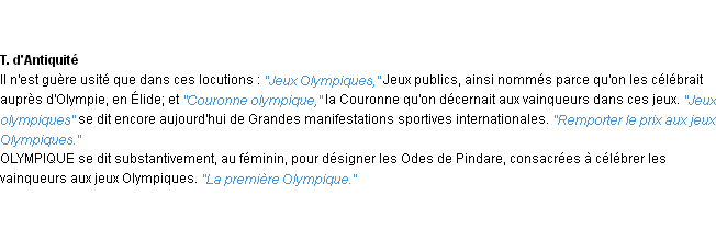 Ancienne définition de « olympique » de source académique (Académie Française, parution de 1835).