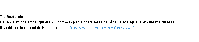 Ancienne signification parue en 1798 dans dictionnaire de l’Académie Française.Merci à Régis et Bernadette pour la numérisation du mot omoplate.