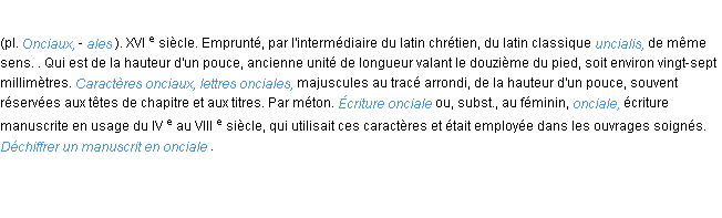 Définition de « oncial » issue du Littré (Auteur Emile Littré, édité en 1876).