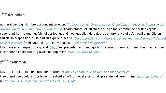 Ancienne définition « onze » du dictionnaire académique Français, parution de l’année 1835.