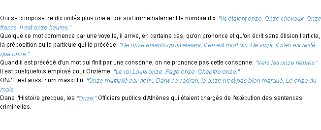 Signification éditée en 1932 pour le terme « onze » par l’Académie Française.