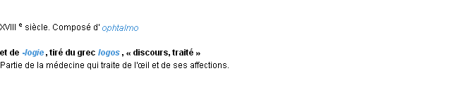 Signification du terme « ophtalmologie », parution de 1932, dictionnaire académique Français.Merci à Thierry et émilie pour la numérisation du mot ophtalmologie.