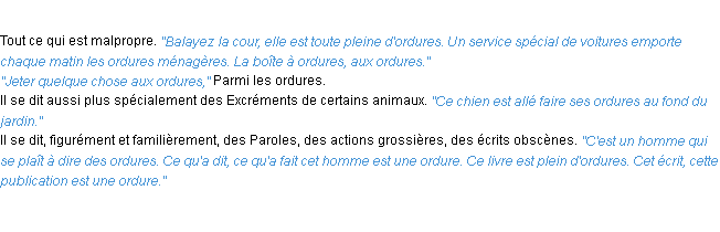 Définition académique pour le terme « ordure » (parue en 1932).
