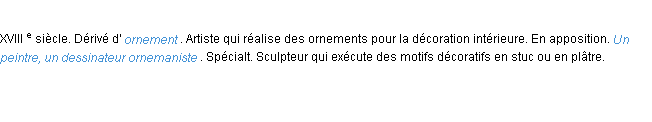 Définition académique pour le terme « ornemaniste » (parue en 1986).