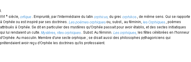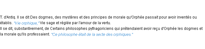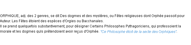 Ancienne définition « orphique » du dictionnaire académique Français, parution de l’année 1835.