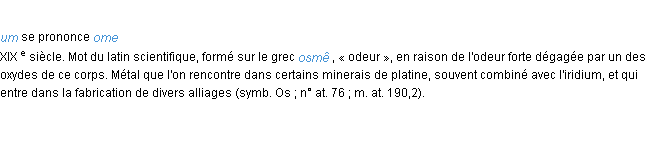 Définition de « osmium » de source académique (Académie Française, parution de 1986).