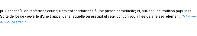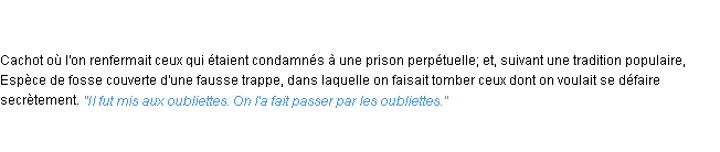 Quelques citations et utilisation du mot oubliettes dans la littérature et les publications journalistiques :