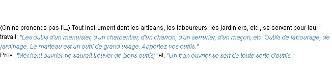 Définition du mot « outil » par l’Académie Française (édition de 1932).