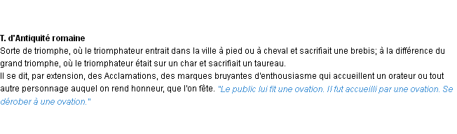 Ancienne signification éditée en 1835 pour le terme « ovation » par l’Académie Française.