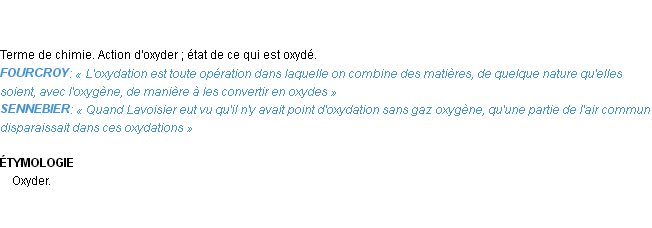 Signification éditée en 1932 pour le terme « oxydation » par l’Académie Française.