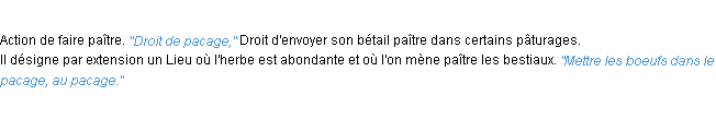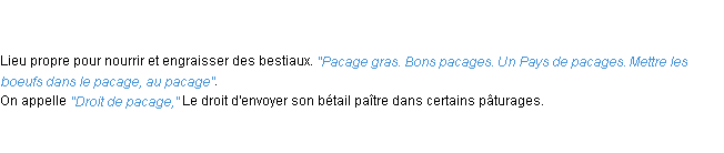 Définition « pacage » du dictionnaire académique Français, parution de l’année 1932.