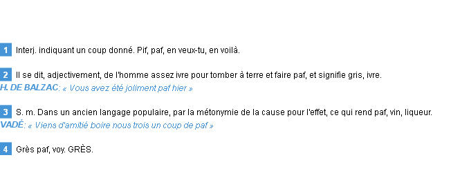 Définition d’Emile Littré (édition de 1876) pour le mot « paf ».