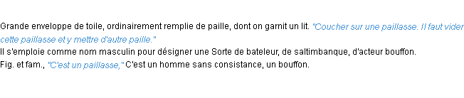 Définition du mot « paillasse » par l’Académie Française (édition de 1986).