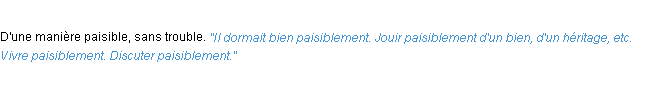 Définition de l’Académie Française (édition de 1986) pour le mot « paisiblement ».