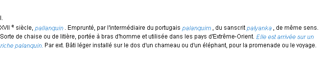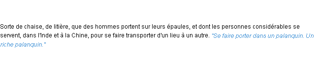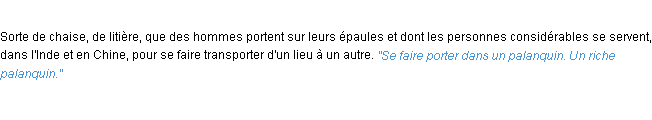 Ancienne définition « palanquin » du dictionnaire académique Français, parution de l’année 1798.Merci à Gaetane et Danièle pour la numérisation du mot palanquin.