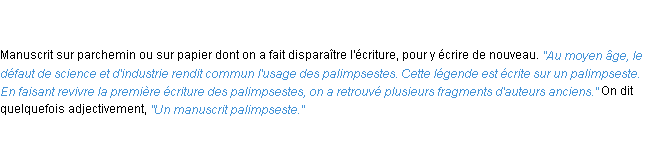 Signification éditée en 1932 pour le terme « palimpseste » par l’Académie Française.