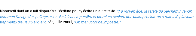 Définition du mot « palimpseste » par l’Académie Française (édition de 1986).