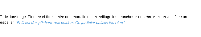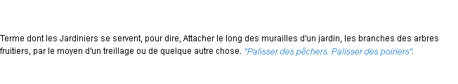 Ancienne signification développée en 1798 par l’académie Française (ACAD - 1798).Merci à Jourdain et Sévérine pour la numérisation du mot palisser.