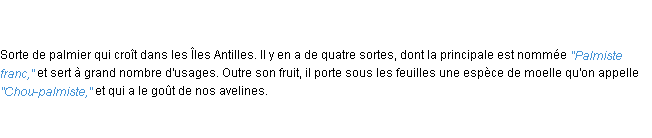 Ancienne définition « palmiste » du dictionnaire académique Français, parution de l’année 1835.