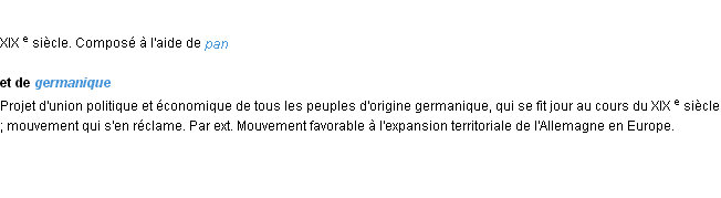 Signification éditée en 1876 pour le terme « pangermanisme » par Emile Littré.Merci à Hervé et Célestine pour la numérisation du mot pangermanisme.