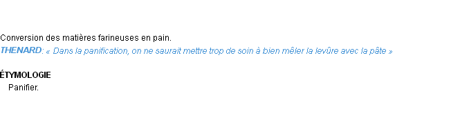 Signification éditée en 1876 pour le terme « panification » par Emile Littré.