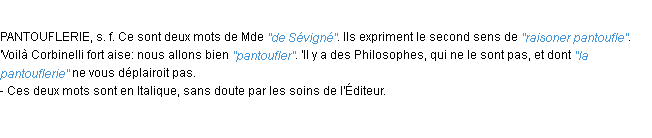 Définition du mot « pantoufler » par Emile Littré (édition de 1876).