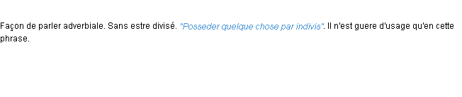 Ancienne définition académique pour le terme « par indivis » (parue en 1694).Merci à Micheline et Maxime pour la numérisation du mot par indivis.