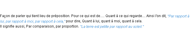 Ancienne définition développée dans dictionnaire académique, 17962.Merci à Jeannot et Pénélope pour la numérisation du mot par rapport.