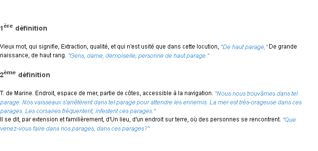 Définition de l’Académie Française (édition de 1932) pour le mot « parage ».