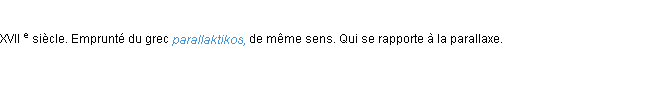 Ancienne définition « parallactique » du dictionnaire académique Français, parution de l’année 1798.Merci à Papillion et Bernadette pour la numérisation du mot parallactique.