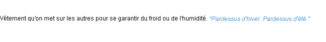 Définition de l’équipe de la-definition.fr (édition de 2009) pour le mot « pardessus ».