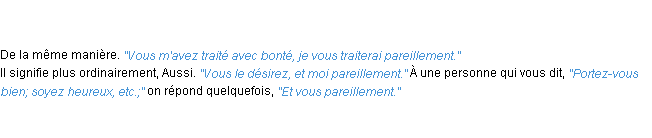 Ancienne définition académique pour le terme « pareillement » (parue en 1835).