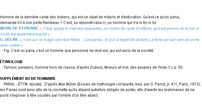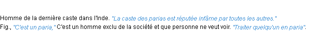 Signification éditée en 1876 pour le terme « paria » par Emile Littré.