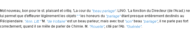 Ancienne définition du mot « parlage » par l’Académie Française (édition de 1835).