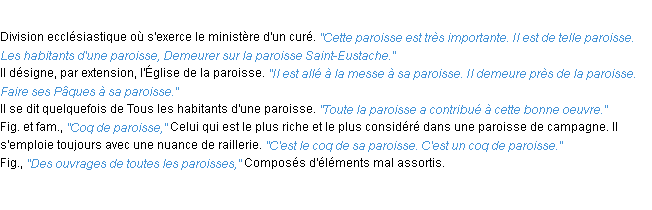Définition de l’Académie Française (édition de 1932) pour le mot « paroisse ».
