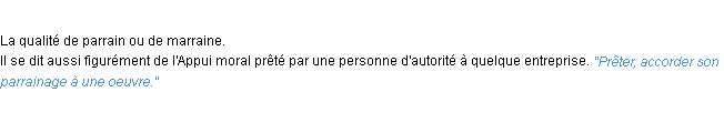 Définition du mot « parrainage » (source wiktionary 2011).