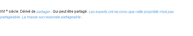 N°1 - Partageable, terme cité par *Sans mention d'auteur dans son ouvrage «Code civil des Français».N°2 - repris par *Sans mention d'auteur au sein de son ouvrage «Code civil des Français».